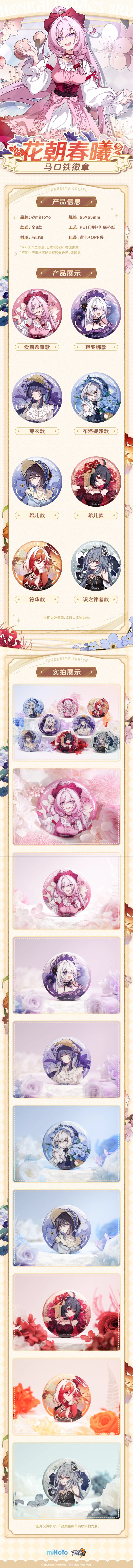 花朝春曦系列马口铁徽章爱莉希雅琪亚娜